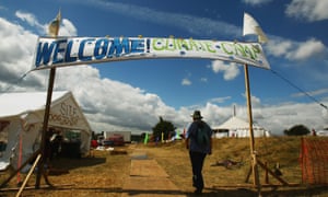 | In 2008 activists set up the Camp for Climate Action near Kingsnorth power station. Photograph: Daniel Berehulak/Getty Images |