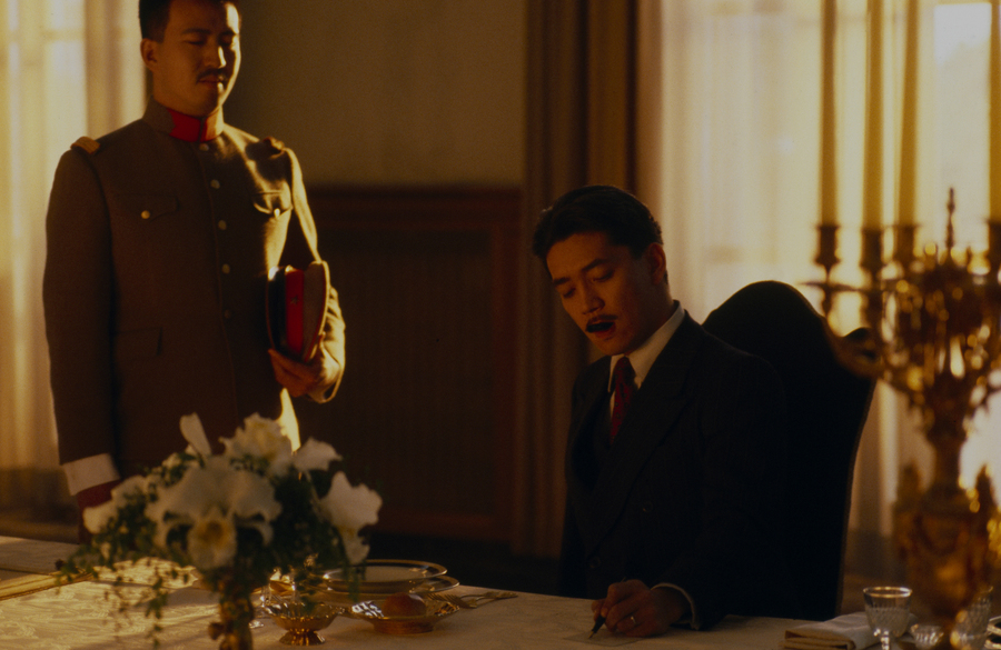 I first met Bernardo at Cannes when I was there for Merry Christmas Mr. Lawrence. Oshima introduced me to him at a party, and he was talking on and on about this movie he was producing, which was The Last Emperor. Then, after some years, I got a phone call. Then a script was sent to me, and I was told to go to China immediately . . . but as an actor. When I read the script I saw that my character, Amakasu, commits hara-kiri. That didn't sit well with me. It was symbolic of this traditionalist Japanese stereotype that I don't really like. It was kind of inconceivable for someone [as modern as] him at the time to commit suicide by seppuku. I thought it wasn't right for the film, which was trying to be a historical tale. Amakasu is a fascinating character because, although he's a fascistic military person well-known for killing anarchists, he lives in Paris before going to Manchukuo. Also, in the film, his office is decorated with a very futurist and modernist design. I was able to talk this through and finally convince Bernardo to change the sword to a gun.